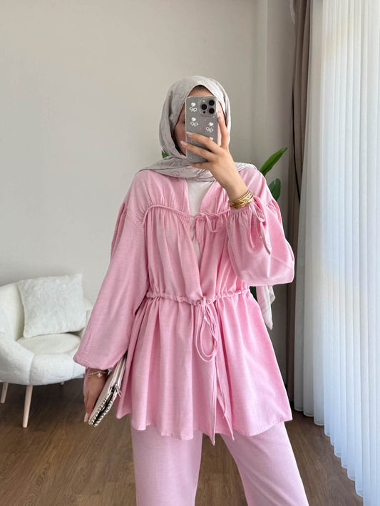 3 AL 2 ÖDEBağcıklı Kimono Krem