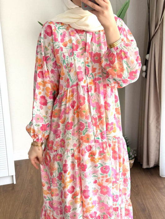 3 AL 2 ÖDEAzra Desenli Elbise Pembe