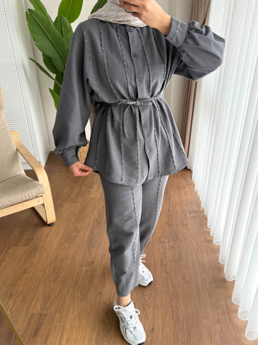 3 AL 2 ÖDEBadem Dikişli Takım Gri