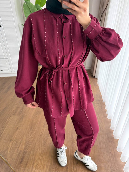 3 AL 2 ÖDEBadem Dikişli Takım Bordo