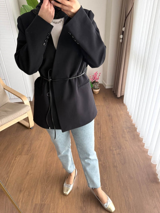 3 AL 2 ÖDEBağlamalı Double Ceket Siyah
