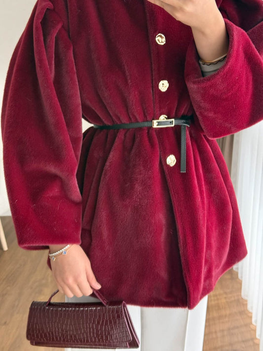 3 AL 2 ÖDEDüğmeli Tay Tüyü Ceket Bordo