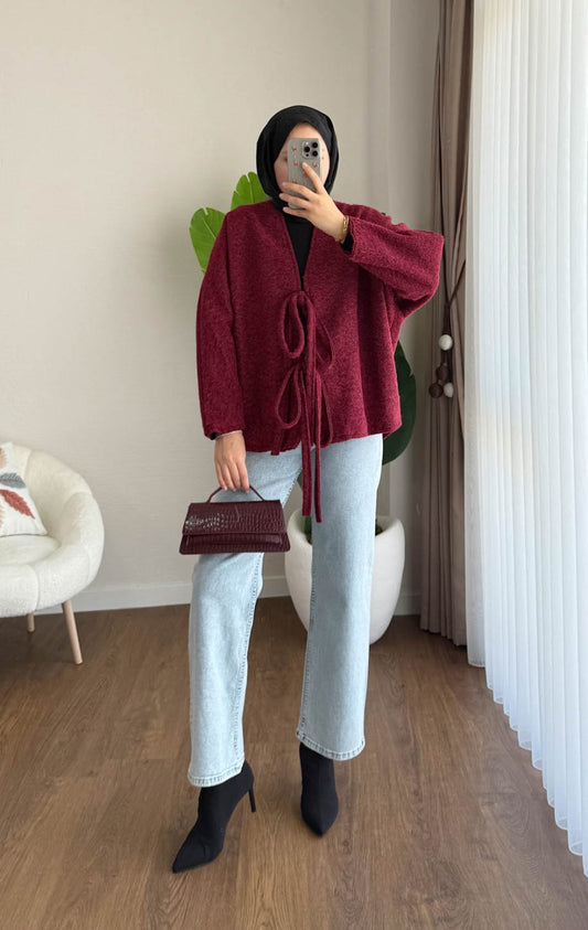3 AL 2 ÖDEÖnü Bağcıklı Kaşmir Ceket Bordo