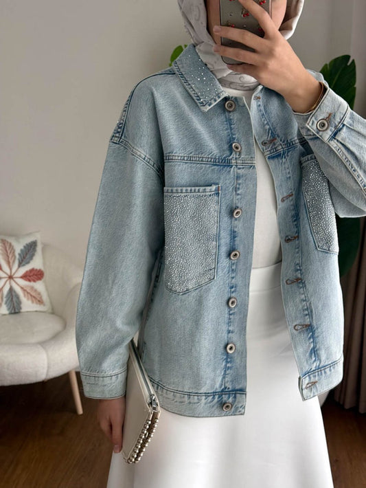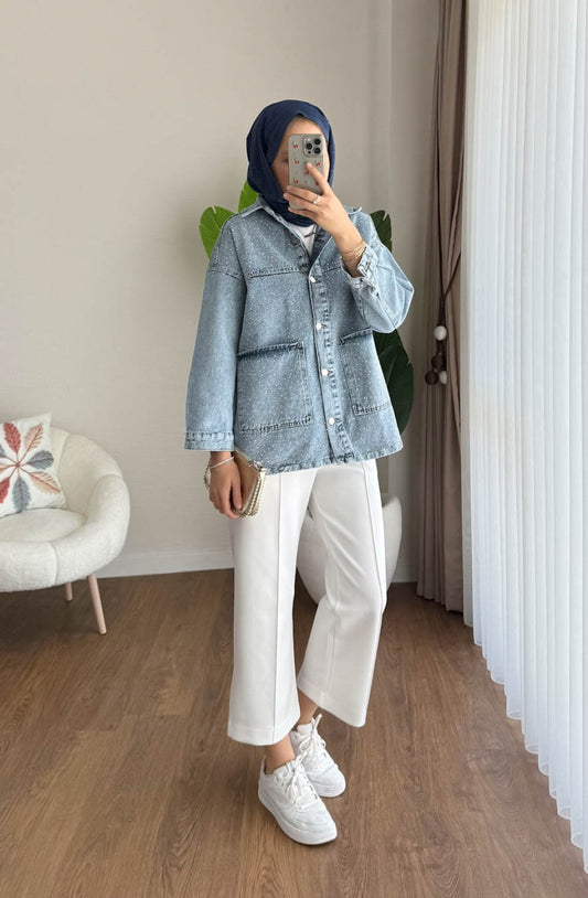 3 AL 2 ÖDETaş Detaylı Kot Ceket Mavi