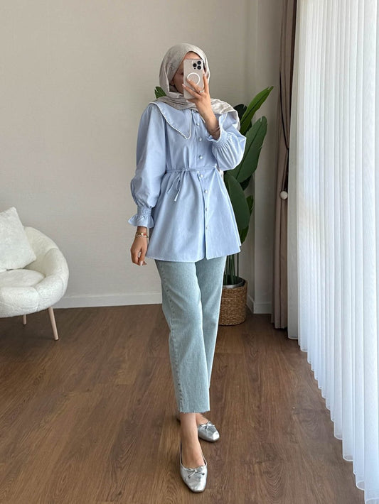 3 AL 2 ÖDEİncili Poplin Tunik Mavi