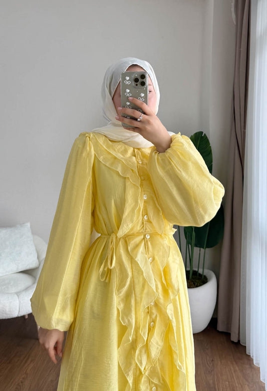 3 AL 2 ÖDEKumru Fırfırlı Elbise Sarı