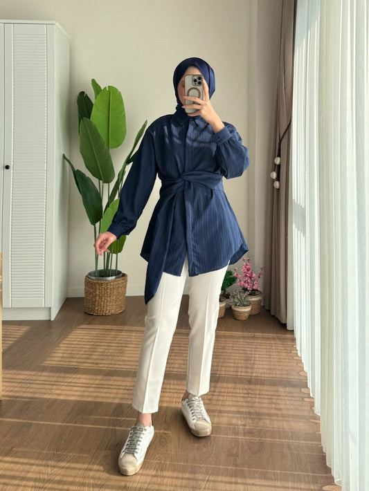 3 AL 2 ÖDEBeli Kuşaklı Gömlek Lacivert
