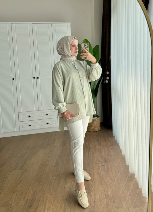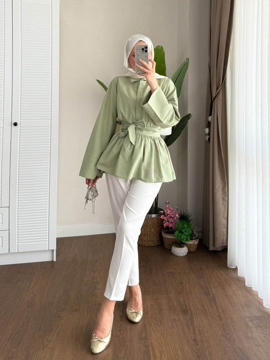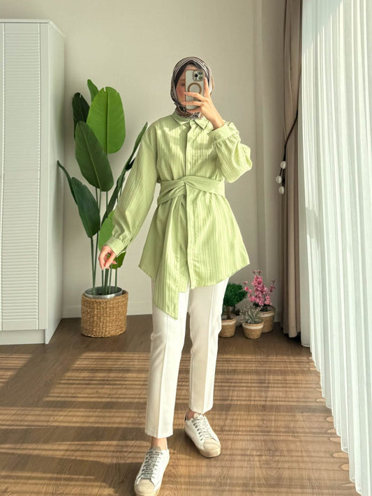 3 AL 2 ÖDEBeli Kuşaklı Gömlek Çağla Yeşili