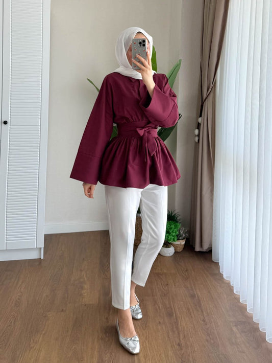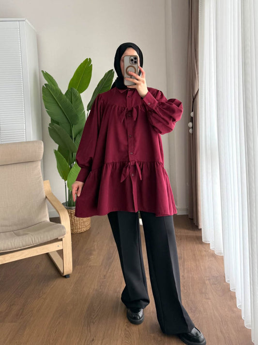 3 AL 2 ÖDEUmay Kuşaklı Gömlek Bordo