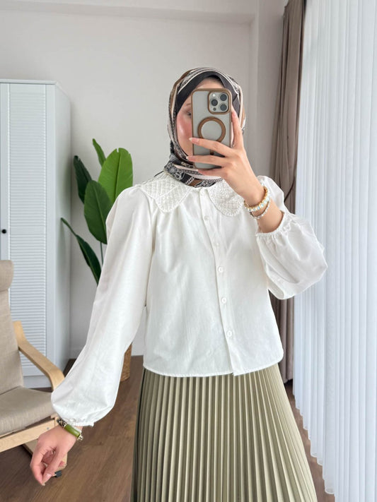 3 AL 2 ÖDETaşlı Yaka Gömlek Ekru