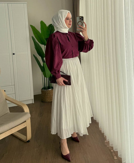 3 AL 2 ÖDEBalon Kol Kısa Gömlek Bordo