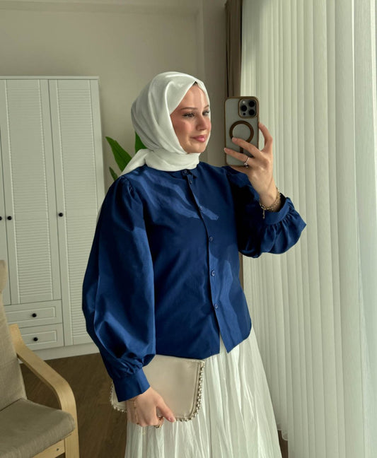 3 AL 2 ÖDEBalon Kol Kısa Gömlek Lacivert