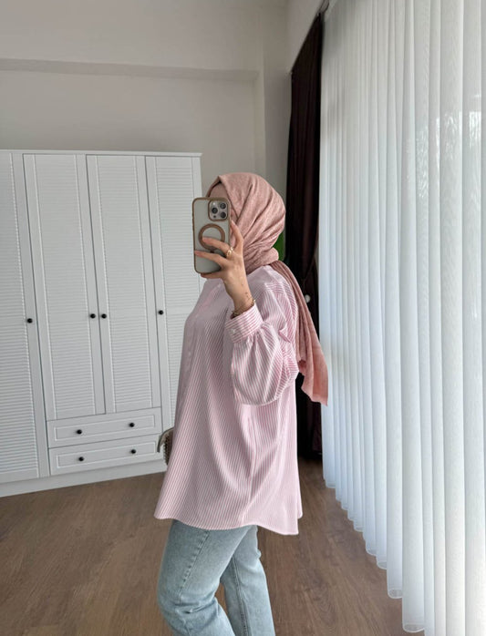3 AL 2 ÖDEÇizgili Oversize Gömlek Pembe