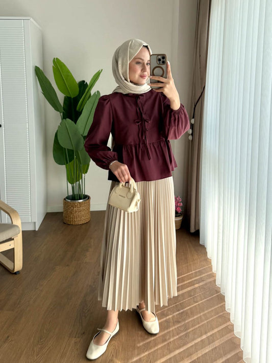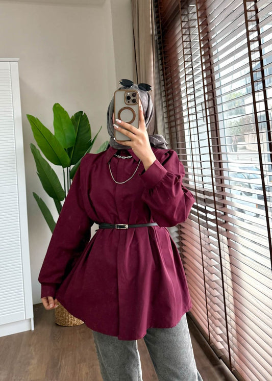 3 AL 2 ÖDEOmuz Volanlı Gömlek Bordo