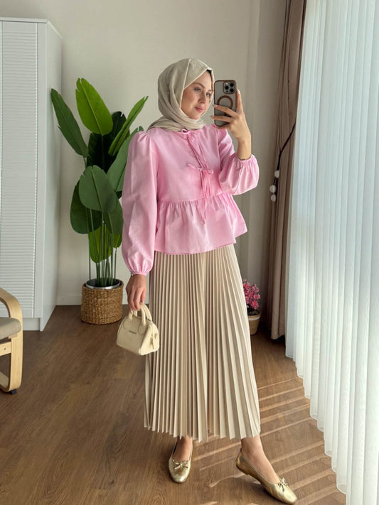 3 AL 2 ÖDEÖnü Bağcıklı Kısa Gömlek Pembe