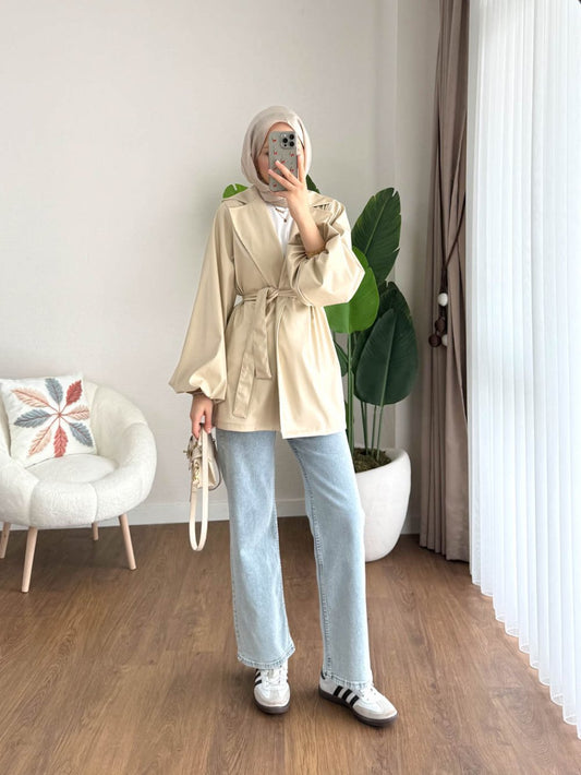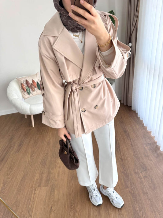 3 AL 2 ÖDEApoletli Kısa Trenç Bej