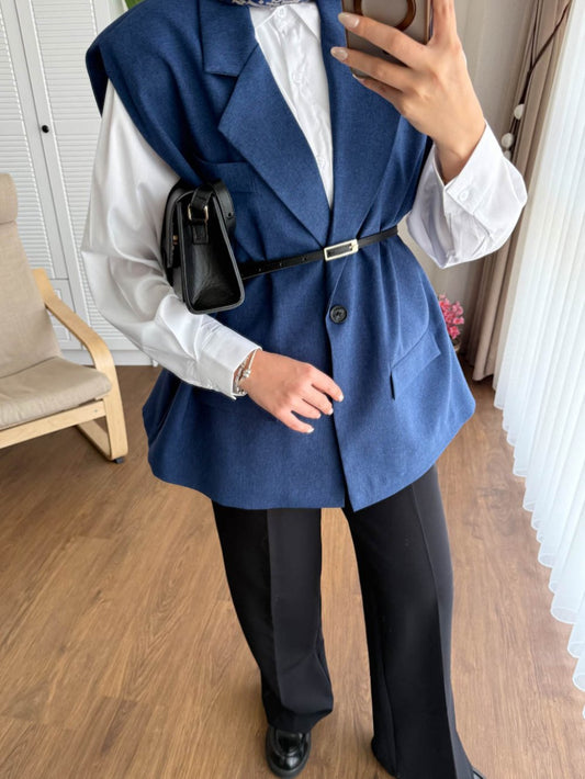 3 AL 2 ÖDEVatkalı Oversize Yelek Lacivert