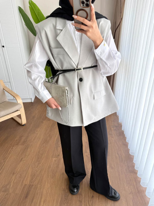 3 AL 2 ÖDEVatkalı Oversize Yelek Gri